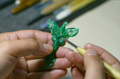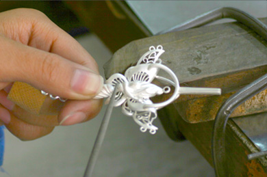 起版師傅進一步修整銀版,使細節部位更加干凈完美。