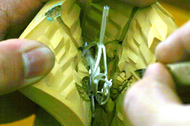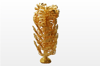 沖洗掉石膏,取出澆鑄好的黃金毛胚件“金樹”
