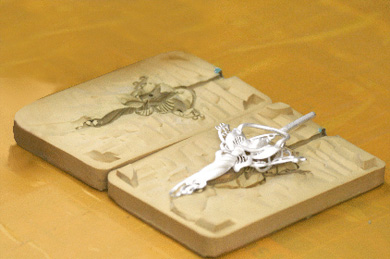 這時,雕好的蠟版還需要澆鑄成銀版,進一步修改、完善,才能進行 壓膠膜、開模等下一步制作。